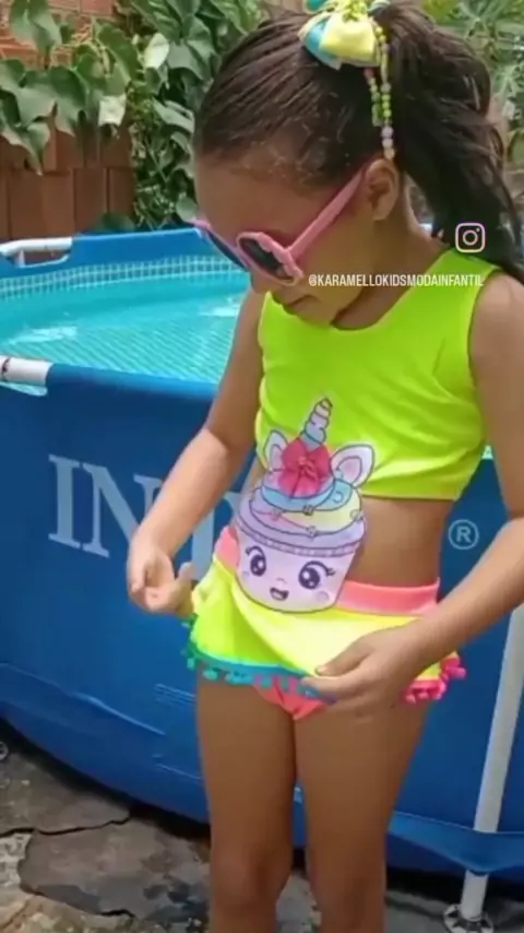 Lyandra arrasando usando esse lindo biquíni com aplique. Encomende logo o seu através do nosso Whatsapp ou pela nossa loja na Shopee Shopee.com.br/karamellokids #karamellokidsmodainfantil