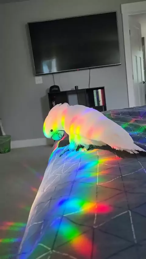 Can birds distinguish colors? This Cockatoos is curious about the color light. #Cockatoos #Parrot #ColorLight #Cutevideo #birdof #kakaktua
