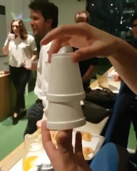 Static on those polystyrene cups! Polystyrene is a very good insulator. It quickly builds up an electrical charge. This gives it a strong electrostatic attraction to other objects, making it stick to things easily.