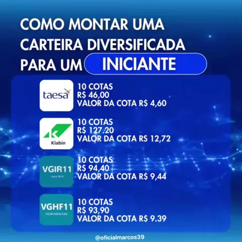 Exemplo de um boa carteira para iniciantes. Poucas ações e poucos fundos é ideal para ir apresentando e também construir uma posição considerável nos ativos #taesa11 #Klabin11 #VGHF11