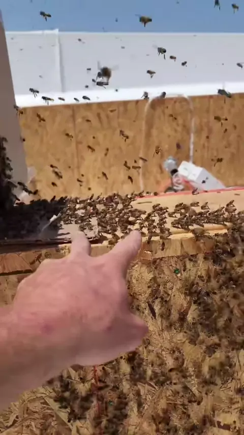 15k bees swarm an active construction site!#beerescue#savethebees#beetok#bees#nature#animals#construction