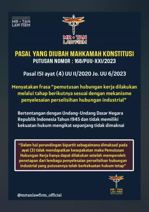 PASAL PENTING PUTUSAN MK TENTANG UU CIPTA KERJA!! #mrtanlawfirm #mrtan #buruh #pekerja #pegawai #karyawan #pengusaha #mk #bisnis #perusahaan #ciptaker #uuciptakerja #pkwt #pkwtt
