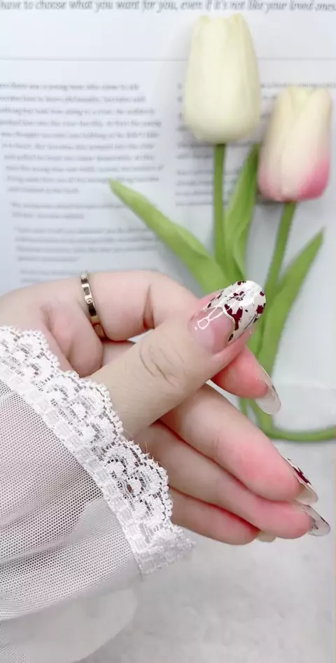 Warna susu daun maple yang dilukis dengan tangan, musim gugur kedua rasa visual # manicure paste