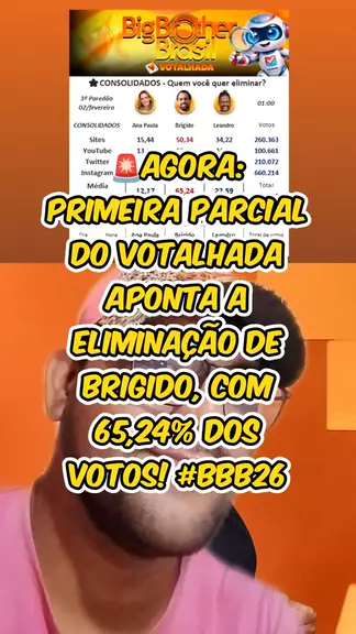 🚨AGORA: Primeira parcial do Votalhada aponta a eliminação de Brigido, com 65,24% dos votos! #bbb26 #anapaularenault #paredaobbb #BBB26 #redebbb