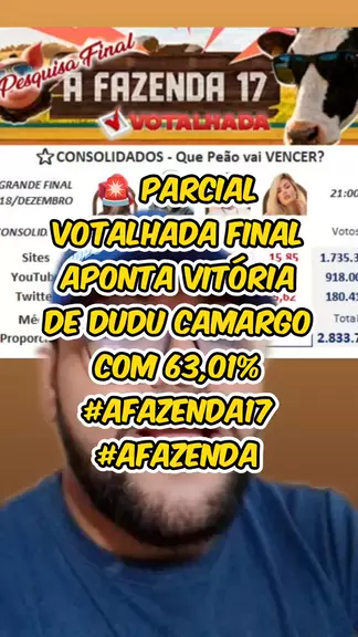 🚨 Parcial Votalhada Final aponta VITÓRIA de Dudu Camargo com 63,01% #AFazenda17 #finalafazenda