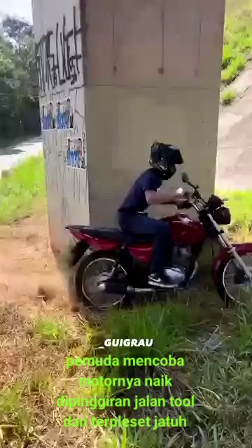 pemuda mencoba motornya naik dipinggiran jalan tool dan terpleset jatuh #SnackStyle #SnackInteraktif