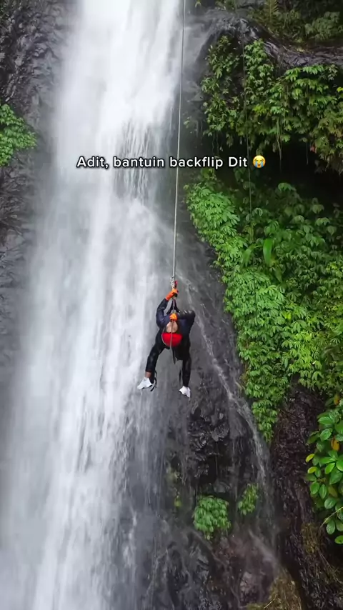 Adit, tolongin Dit. Bantuin backflip Dit 😭 #Backflip #BackflipCore #Canyoning #Canyoneering #Rappeling #CurugAul #Purbalingga #