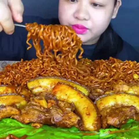 Black bean noodles & spicy pork belly (Yt:POPY ASMR) #popyasmr #SpicyFood #spicynoodles #mukbangasmr #mukbangeatingshow