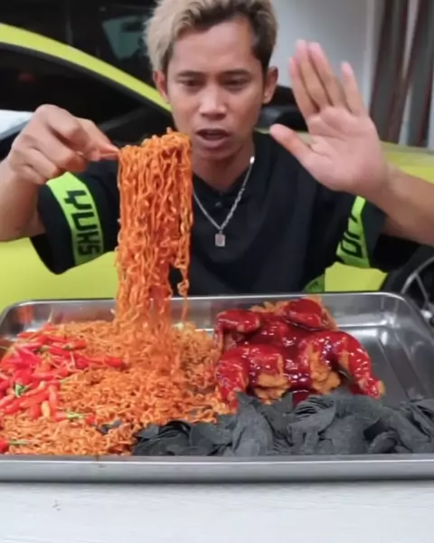 Mukbang mie samyang, ayam richeese 1 ekor siram saus samyang, keripik ghost pepper + cabe rawit🥵🔥 (Yt:Anggun Supriadi) #anggunsupriadi #makanpedas #bikinngiler #mukbangvideo #mukbangeatingshow