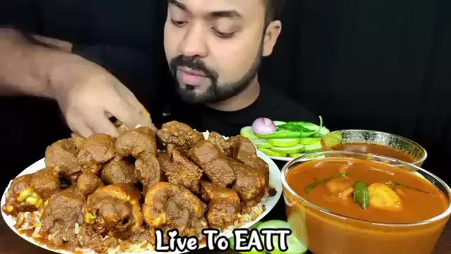 MUKBANG MUTTON LIVER CURRY, MUTTON HEART CURRY, DUM ALOO, SALAD, RICE #livetoeatt #mukbang #mukbangvideo #bikinngiler #mukbangeatingshow