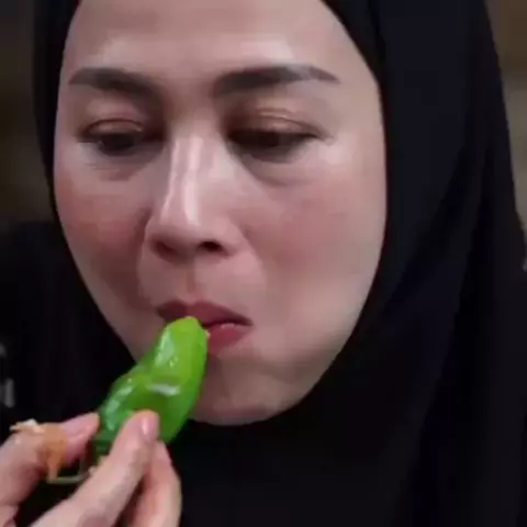 Makan nasi ulek, telor dadar, oncom leunca + cabe bendot (Cr: Shanty Denny) #shantydenny #cabebendot #bikinngiler #SnackStyle #BK_family