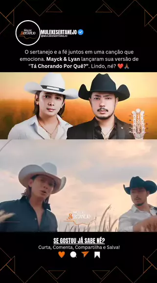Mayck & Lyan elevaram ainda mais a qualidade de uma música que já era incrível. Sertanejo e fé se entendem como nunca. ❤️🙏🏾🤠 📸: Reprodução/Internet/MayckeLyan #musicasertaneja #mayckelyan #lancamento