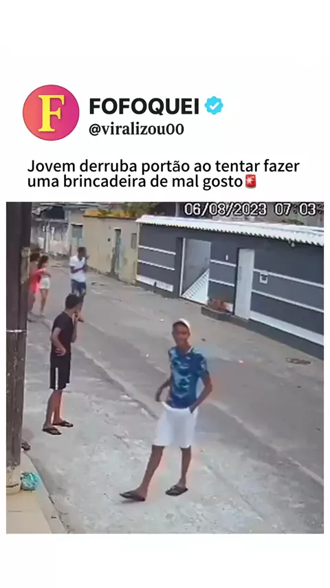 Jovem durruba portão no chute😱 #derrubou #portão #Chute #Brincadeira #jovem