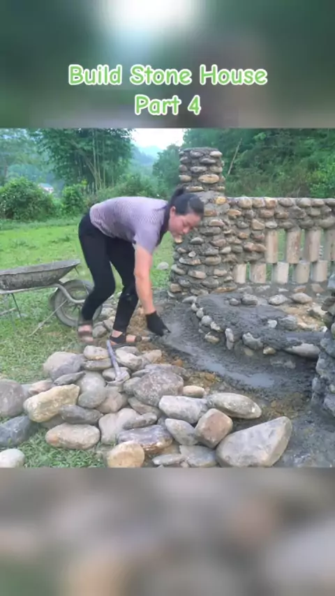 Alone girl build stone house p4#mybushcraft#build#survival#bushcraft#offgrid#Outdoors#logcabin#cabin##