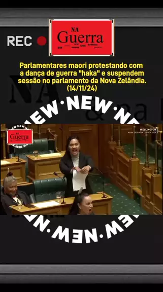 Parlamentares maori protestando com a dança de guerra "haka" suspenderam sessão do Parlamneto em 14 de novembro de 2024.