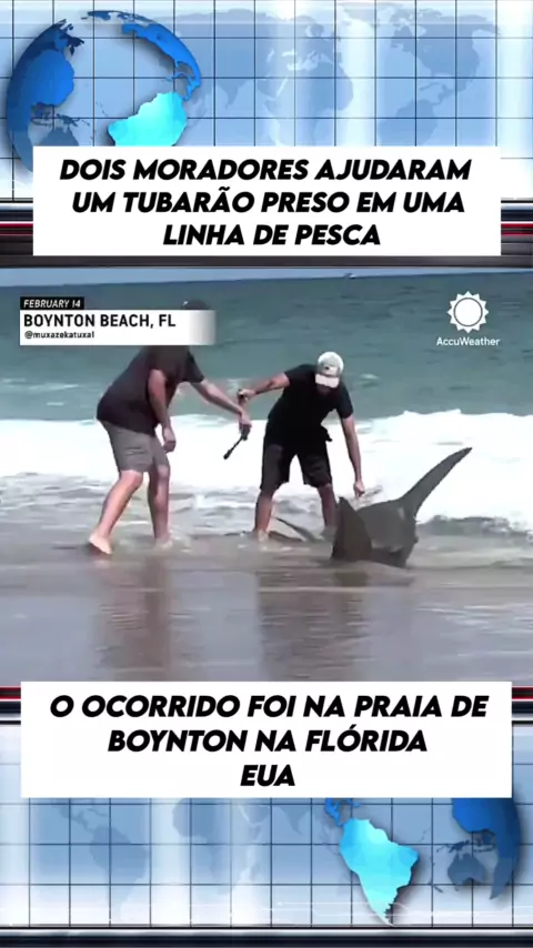 Dois moradores ajudaram um tubarão preso em uma linha de pesca em Boynton Beach, Flórida. #noticas #tubarão #reportagem #KWAINOTICIAS #ultimasnoticias