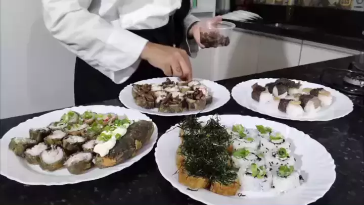 Gastei 56,00 e conseguir fazer 70 peças Hot roll salmão com cream cheese e couve frita Urumaki salmão e crem cheese e Shimeji Niguiri skin com pele de salmão Temaki frito salmão cream cheese uramakis e nigiris atum com cream cheese Hossomaki salmão Hot holl de atum com cebolinha Hot hol de salmão com kani kama e tare