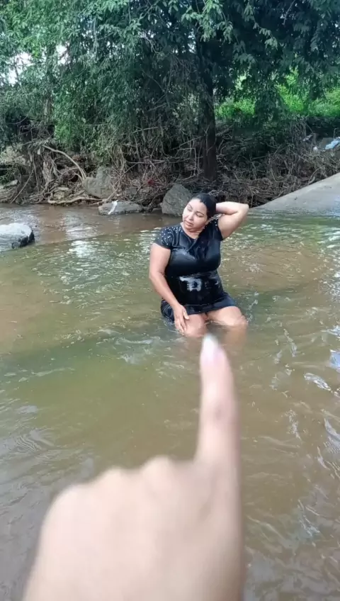 minha irmã tomando banho no rio