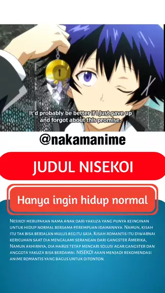 Nesikoi merupakan nama anak dari yakuza yang punya keinginan untuk hidup normal bersama perempuan idamannya. Namun, kisah itu tak bisa berjalan mulus begitu saja. Kisah romantis itu diwarnai kericuhan saat dia mengalami serangan dari gangster Amerika, Namun akhirnya, dia harus tetap mencari solusi agar gangster dan anggota yakuza bisa berdamai. NISEKOI akan menjadi rekomendasi anime romantis yang bagus untuk ditonton. #pecintaanime #animelucu #snackpedia #rekomendasianime #pyf