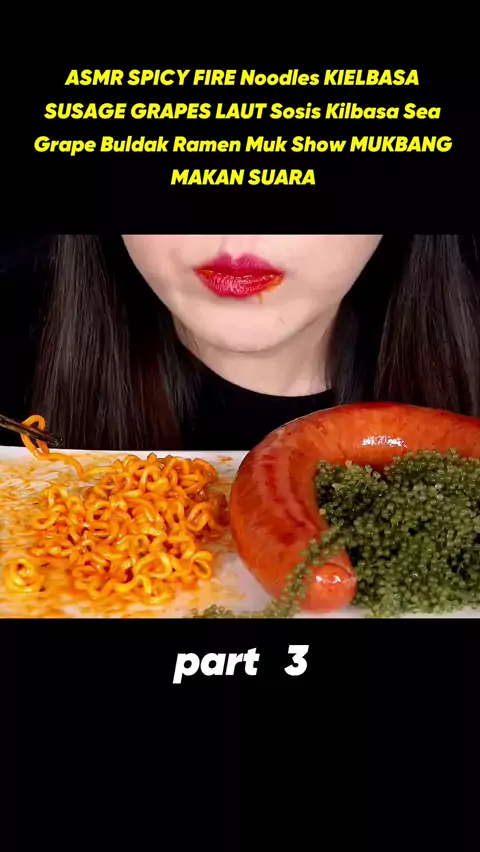 ASMR SPICY FIRE NOODLES KIELBASA SAUSAGE SEA GRAPES 킬바사소세지 바다포도 불닭볶음면 먹방 MUKBANG EATING SOUNDS 咀嚼音