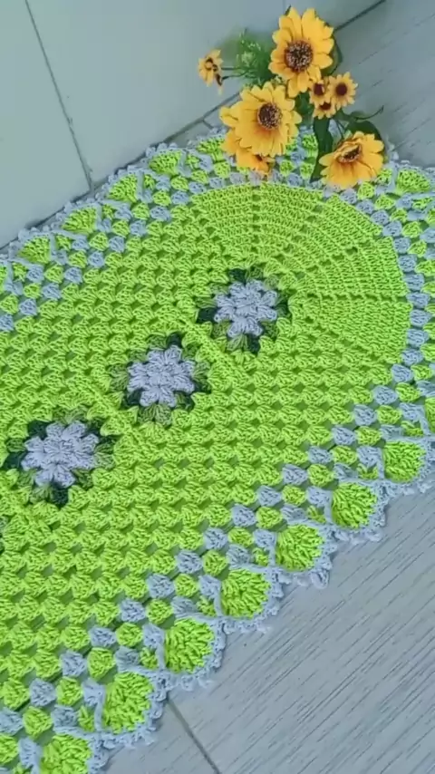 Passadeira Medindo 145x55 cm. Na cor Verde Neon com Branco
