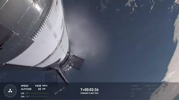 Separação do primeiro estágio da Starship. #starship #foguete #NASA☄️
