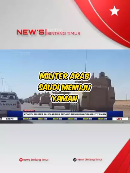 Breaking news bintang timur: Minggu, 7 Desember 2025 Saudi – UEA | Yaman Memanas 🔥 Perang Saudara di Yaman di Ambang Pecah Ketegangan besar kembali mengguncang Yaman. Konvoi kendaraan lapis baja Arab Saudi dilaporkan bergerak cepat menuju Provinsi Hadramaut, hanya beberapa jam setelah pasukan yang didukung Uni Emirat Arab (UEA) memperluas kontrol mereka di wilayah tersebut. 💥 Hadramaut, salah satu kawasan penghasil minyak terbesar di Yaman, #newsbintangtimur #yaman #arab #UEA
