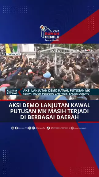 Aksi saling dorong mahasiswa dan aparat terjadi di Mataram, Nusa Tenggara Barat saat aksi demo mengawal putusan MK dan meminta DPR membatalkan Revisi UU Pilkada berlanjut hari ini (23/08). Sementara itu, aksi saling dorong antara mahasiswa dengan pihak kepolisian terjadi di depan Kantor DPRD Sulawesi Tengah. Di Surabaya, Jawa Timur mahasiswa menggelar aksi demonstrasi mengawal putusan MK di depan Gedung DPRD Jawa Timur. #KawalPutusanMK #RevisiUUPilkada