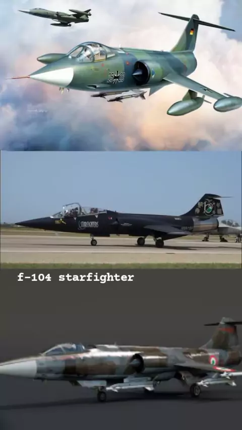 The Lockheed F-104 Starfighter is an American single-engine, supersonic air superiority fighter which was extensively deployed as a fighter-bomber during the Cold War. Created as a day fighter by Lockheed as one of the "Century Series" of fighter aircraft for the United States Air Force (USAF), it was developed into an all-weather multirole aircraft in the early 1960s and produced by several other nations, seeing widespread service outside the United States.#f104starfighter#lockheedf104starfigh...