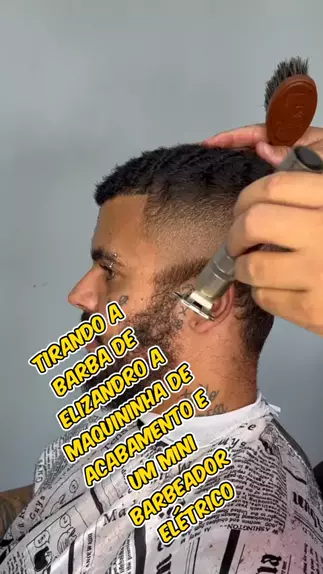 Tirando a barba utilizando a maquininha de acabamento e o mini barbeador elétrico