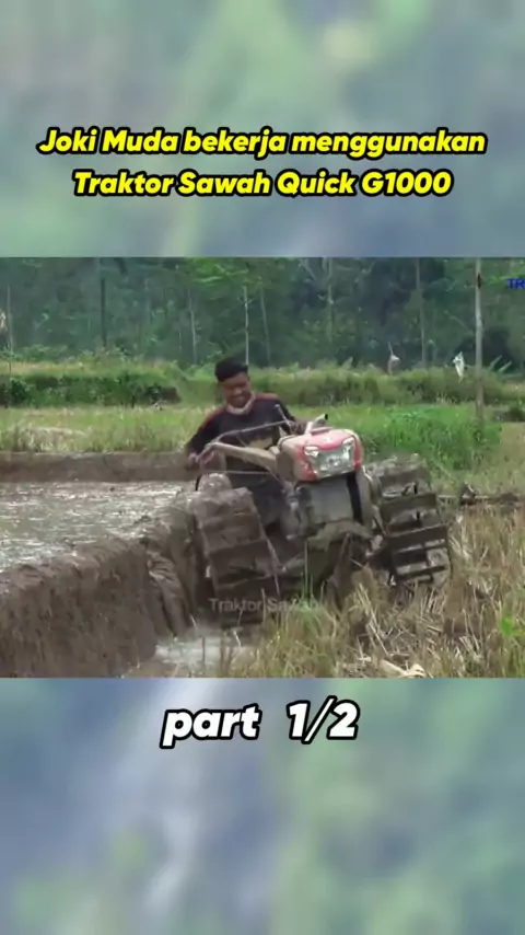 Joki Muda bekerja menggunakan Traktor Sawah Quick G1000