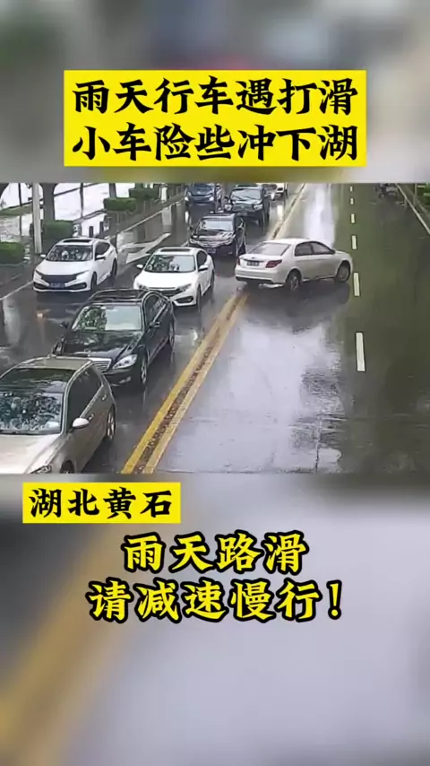 Saat mengemudi terpeleset di hari hujan, mobil itu hampir bergegas ke danau # Satu helm dan satu sabuk pengaman # Menjaga aturan dan keselamatan # Keselamatan lalu lintas @ Huangshi Traffic Police (O2013390299)