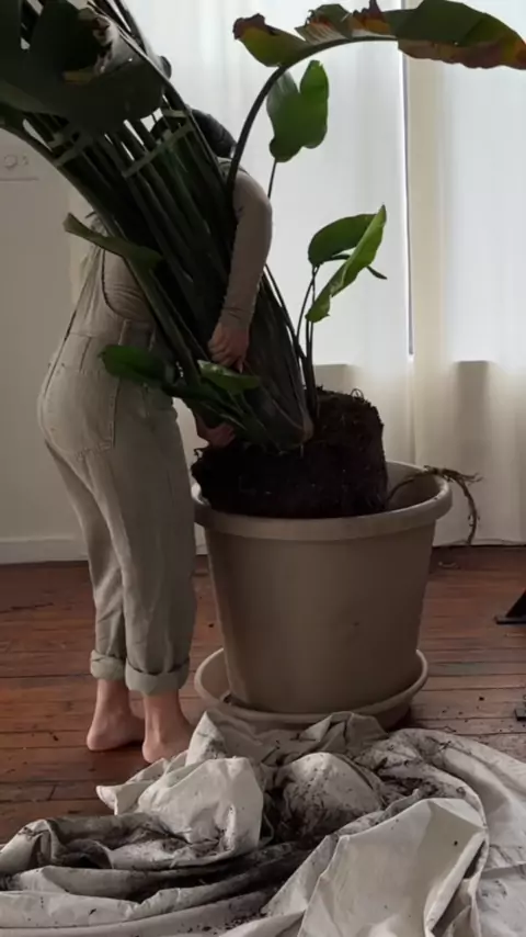 Can’t believe I was able to do this on my own without damaging a leaf 😌#birdofparadise#PlantTok#repot#plantmom#latinaplantmom#loftapartment