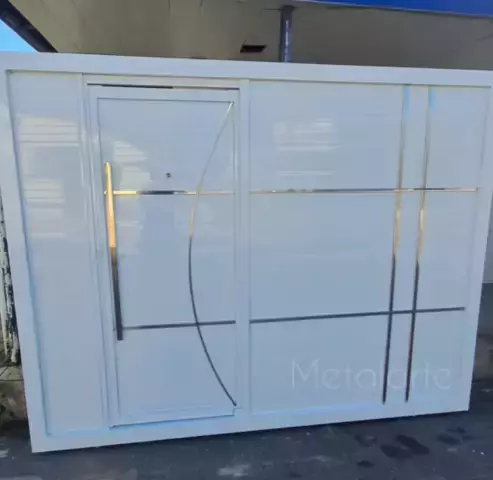 Portão de alumínio de correr. 🔹️Porta social corrediça; 🔹️Frisos de inox; 🔹️Puxador de inox; 🔹️Tinta automotiva industrial na cor branco. #maisviews #sorriapravida #kwainobbb #perguntaserespostas