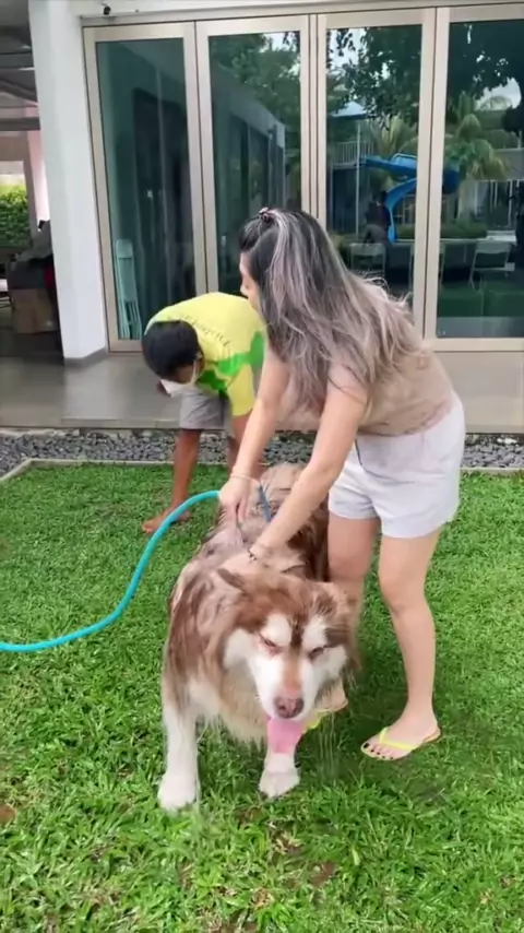 Hari ini kita mandiin si LUNA🐶🥰❤️#alaskanmalamute#giants#raksasa#bigdog#mydogs#viraldog#viral#dog#dog#malamute#doglife#doglover#animallover##animals