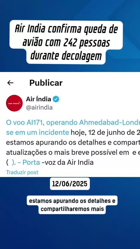 Air #India confirma #queda de #avião com 242 pessoas durante decolagem