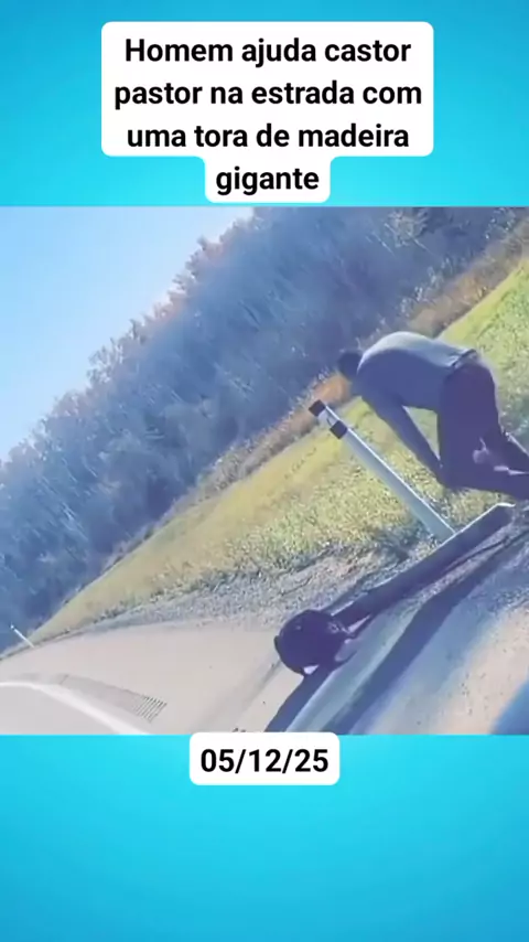 Homem ajuda castor pastor na estrada com uma tora de madeira gigante #noticias #noticiasviral
