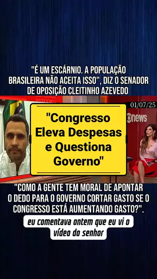"É inaceitável. A população brasileira não tolera isso", afirma o senador de oposição Cleitinho Azevedo (Republicanos). "Como podemos exigir que o governo reduza despesas se o próprio Congresso continua aumentando os gastos?" #noticias #gastospublicos #cleitinho #lula #politicabrasileira .Fonte:Globo News