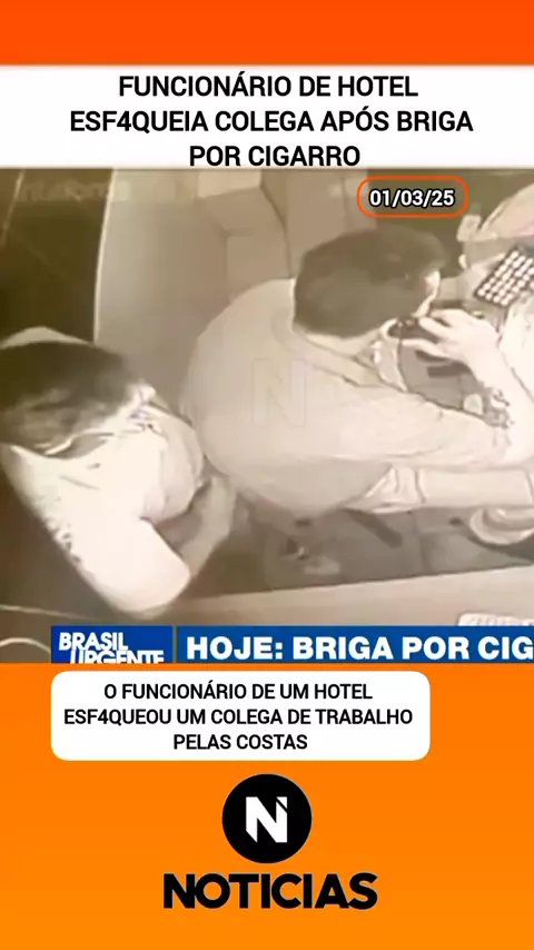 O #funcionário de um #hotel esf4queou um #colega de trabalho pelas #costas após uma #briga por causa de cigarro. A vítima foi internada com ferimentos graves.