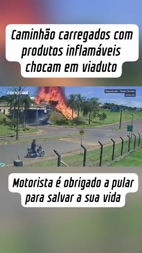 Caminhões carregado de inflamáveis chocam em viaduto #notícias #acidente