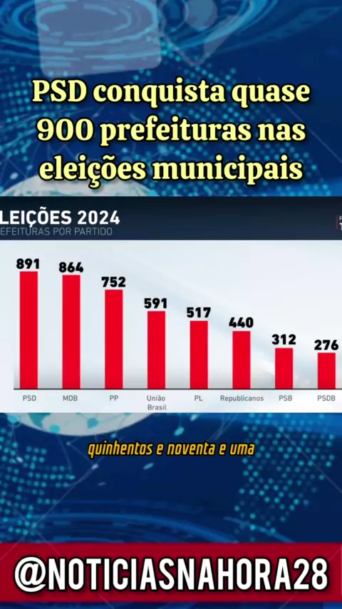 PSD conquista quase 900 prefeituras nas eleições municipais; #eleicoes2024 #Notíciasfamilia #EstrelaDeFamília #noticias