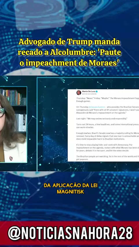 Advogado de Trump manda recado a Alcolumbre: 'Paute o impeachment de Moraes'; #Notíciasfamilia #EstrelaDeFamília #noticias