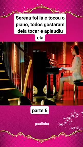 Serena foi lá e tocou o piano, todos gostaram dela tocar e aplaudiu ela novela o canto do pássaro
