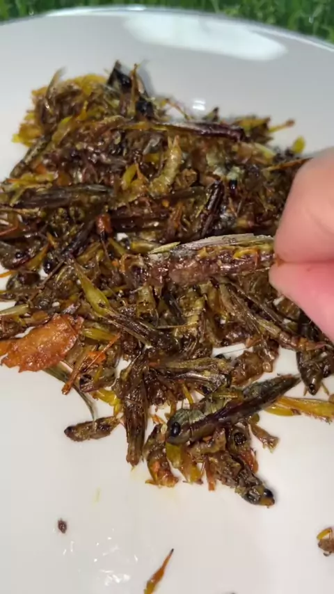 Pengen yg gedenya😭 #makananviral #makanananeh #belalang #makanbelalang #walanggoreng