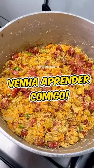 Venha aprender comigo! Receita: 01 banana de fritar 01 calabresa 100g de bacon 1/2 cenoura 1/2 cebola picada 03 dente de alho com sal Pimenta Farinha de mandioca branca 02 colheres de margarina Cheiro verde #farofadebanana #comida