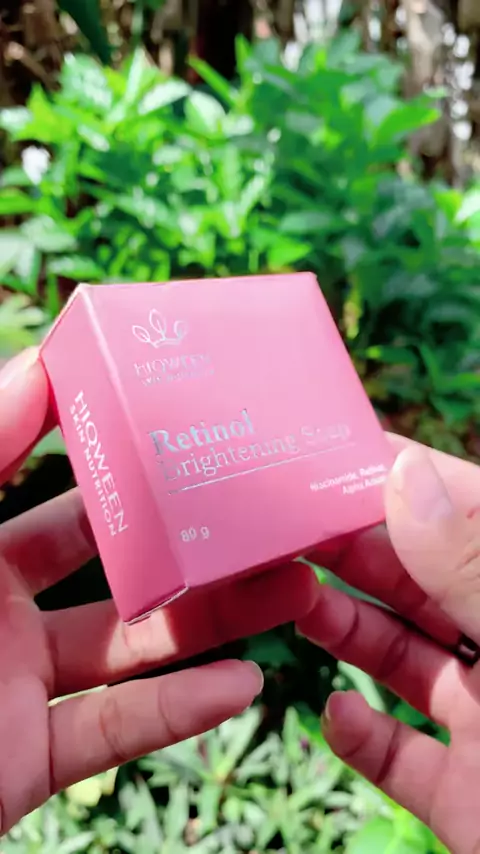 Hiqween Retinol Brightening Soap 80gr retinol alpha arbutin niacinamide coconut oil pudarkan flek samarkan penuaan cerahkan melembabkan BPOM no alcohol paraben fragrance semua kulit. Sabun batang anti aging pertama dengan retinol yang bantu pudarkan flek garis halus penuaan sambil cerahkan dan melembabkan wajah formula aman cocok semua jenis kulit hasil maksimal! #retinolsoap #sabunretinol #hiqween #sabuncerah #antiaging