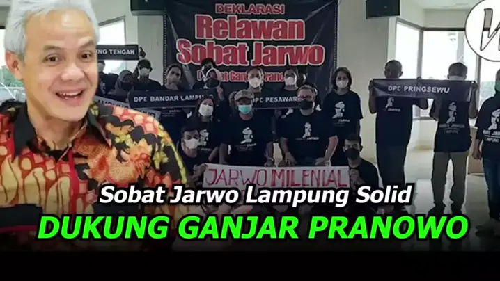 Relawan Ganjar Pranowo yang bernama Jarwo Lampung mendeklarasikan dukungannya terhadap Pak Ganjar Pranowo.Fathudin selaku Ketua Jarwo Lampung mengatakan pihaknya bergerak setelah mendapatkan mandat dari Sobat Jarwo tingkat pusat. Ia mengatakan timnya bertekad mendukung Pak Ganjar Pranowo sekuat tenaga agar menang di Pilpres 2024. Hal yang membuat Sobat Jarwo menyukai Pak Ganjar adalah karena sosoknya yang tidak basa-basi, turun langsung mengatasi persoalan di Jawa Tengah. #KerjaBareng #sahabatg