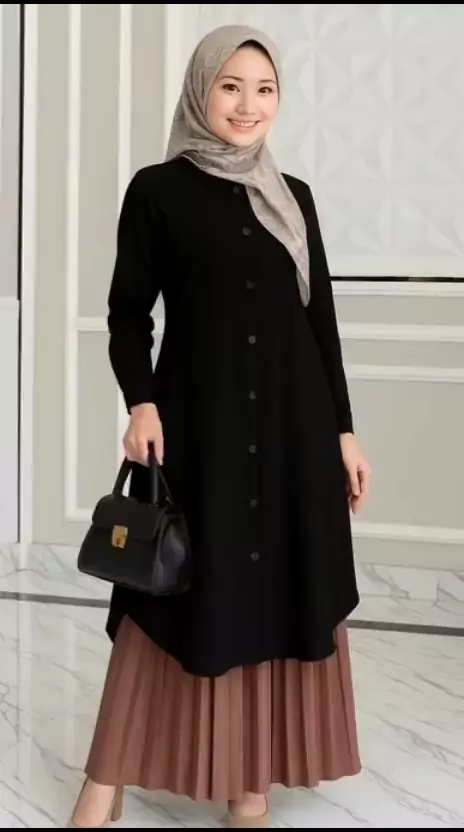 Zalfaoutfit NARAYA tunik Baju Atasan Wanita muslim kerja kuliah panjang polos polo Linen premium lengan manset #tunik #atasanwanita #OOTD #fashion #