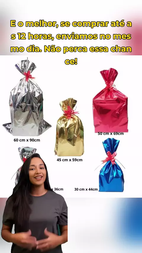 Transforme seus embrulhos com nosso Kit de Sacos Metalizados! #PresentesComEstilo #SacosMetalizados #EmbrulhoFácil #LojinhaDoHabib #ComprasInteligentes