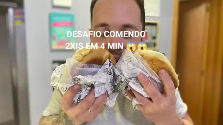 DESAFIO COMENDO 2 XIS CARNE EM 4 MIN !! CURTA COMENTA E COMPARTILHE VALEUU! #Comida #xis #desafio #burger